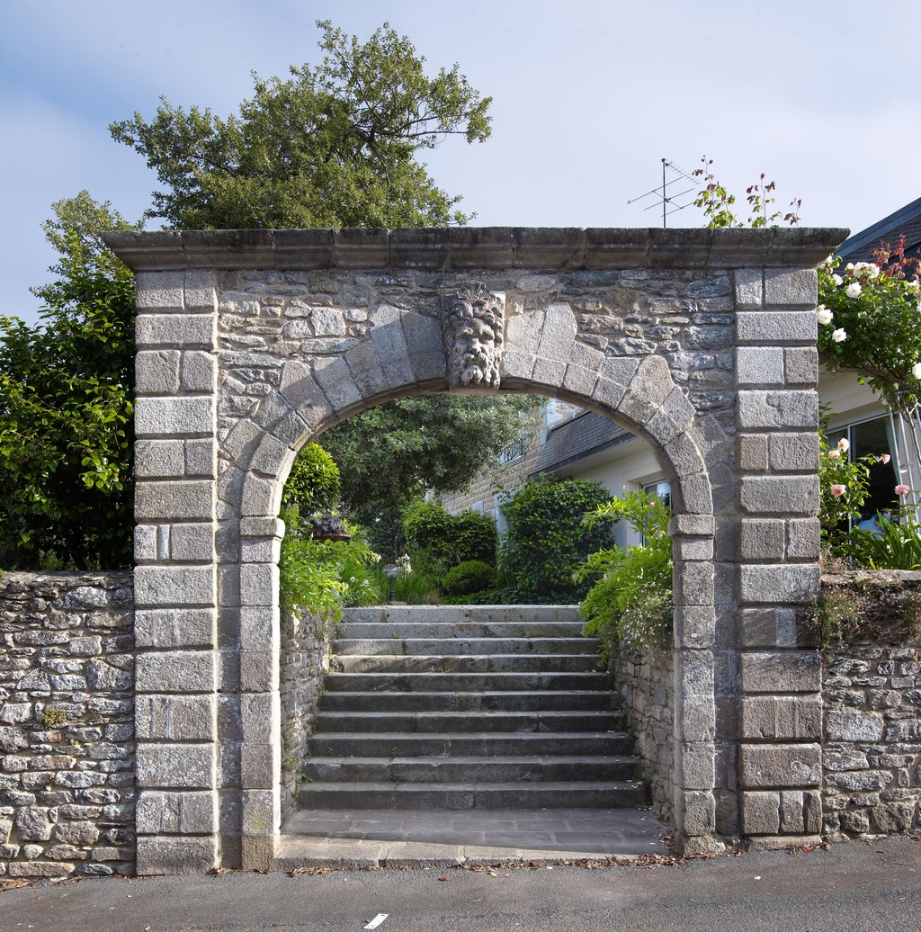 Tréguier, 4 rue Chateaubriand : ancien portail du palais épiscopal (remontage), vue de faceImmatriculation