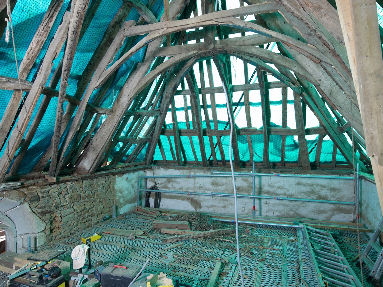 Charpente du chevet en cours de restauration, juillet 2018Immatriculation