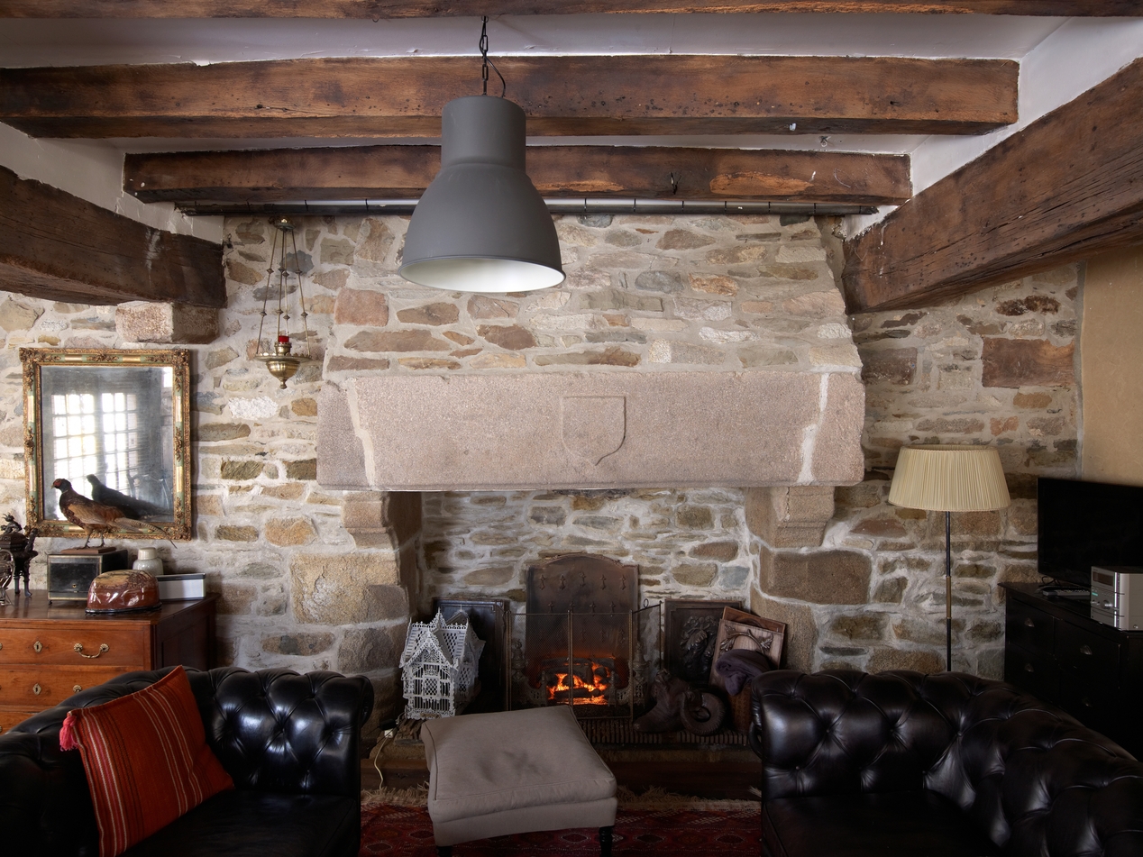 Pièce du rez-de-chaussée anciennement à usage de boutique. Détail de la cheminée ornée d'un blason de marchand (?) autrefois peintImmatriculation