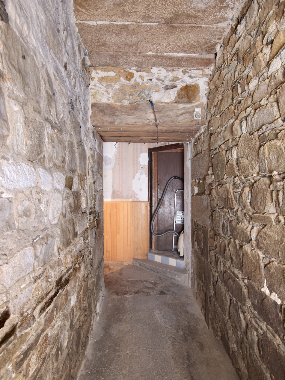 Tour d'escalier. Passage sous la deuxième volée donnant dans la maison.Immatriculation