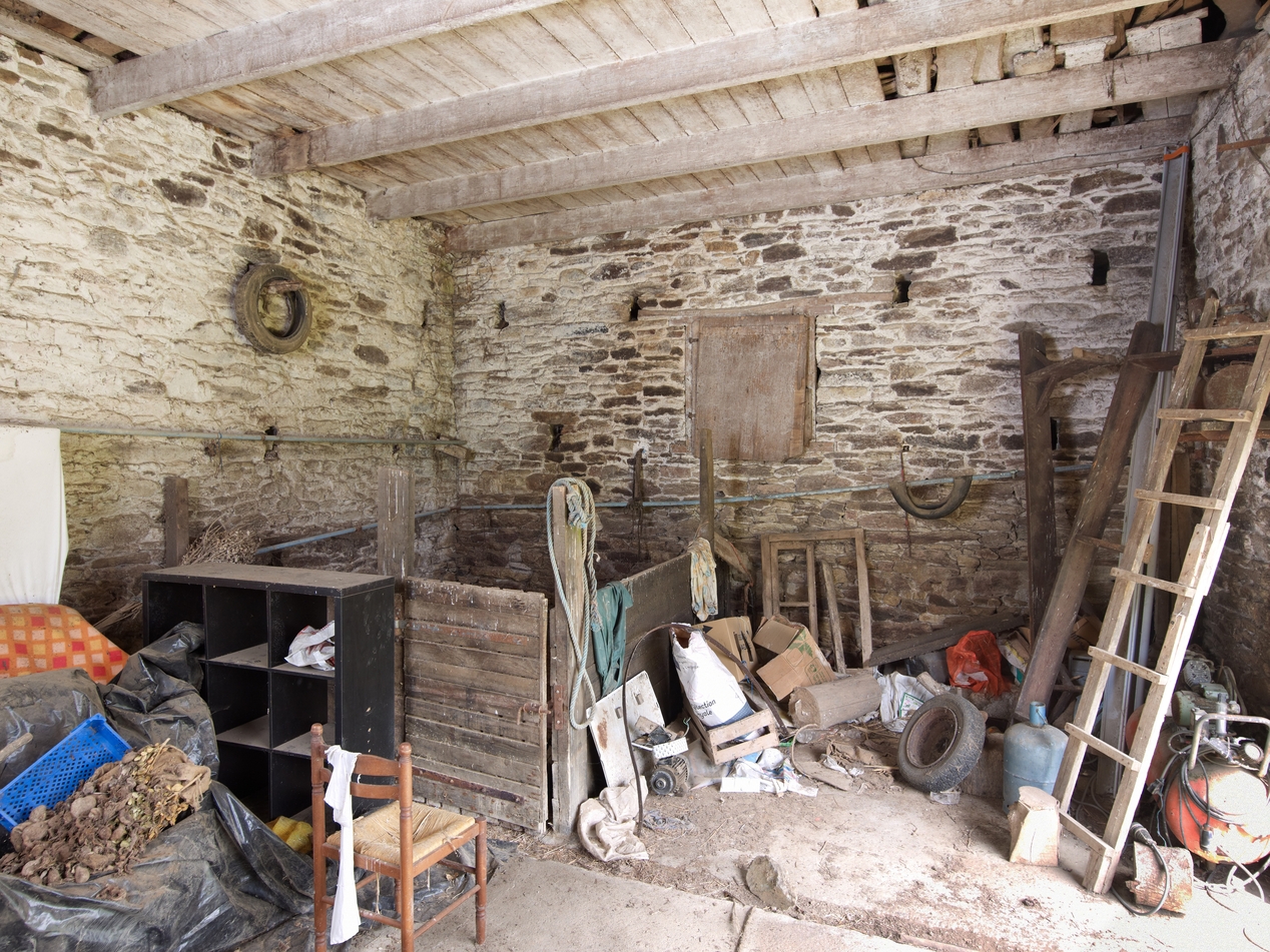 Minihy-Tréguier, Kerprigent : grange couverte en tuile, vue intérieureImmatriculation