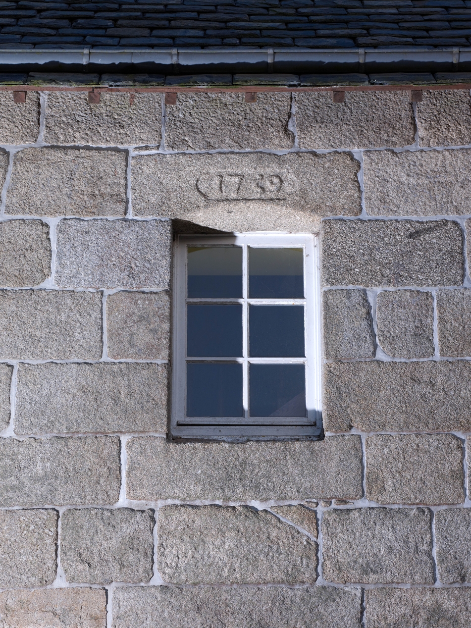 Ploubezre, Convenant Le Moal. Logis daté 1759. Elévation nord-ouest. Détail de la fenêtre de l'étageImmatriculation