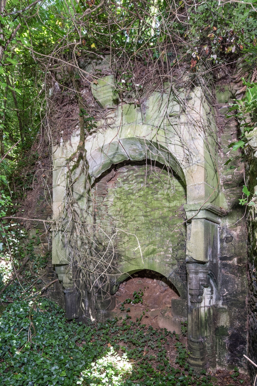 Le château : vue intérieure, partie est, vestiges des cheminéesImmatriculation