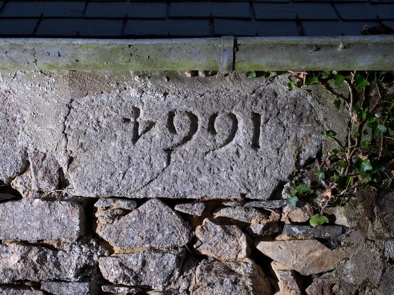 Façade postérieure, remploi d'une pierre datée de 1664Immatriculation