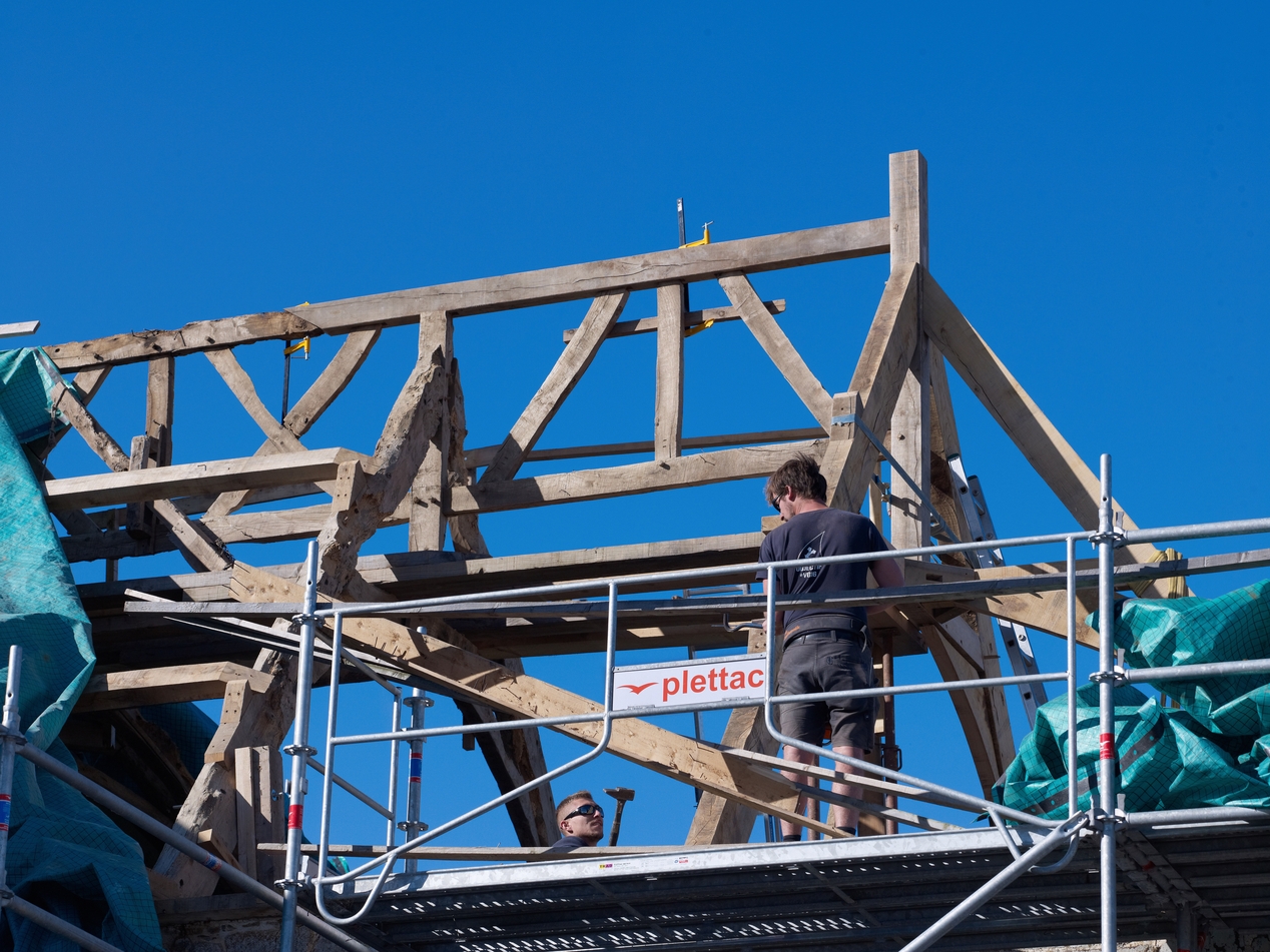 Charpente du chevet en cours de restauration, juillet 2018Immatriculation