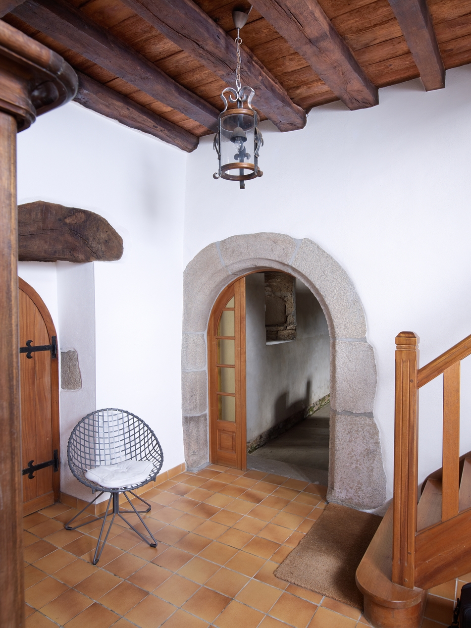 Rez-de-chaussée, salle basse actuellement vestibule, détail de la porte en arc plein cintre du mur de refendImmatriculation