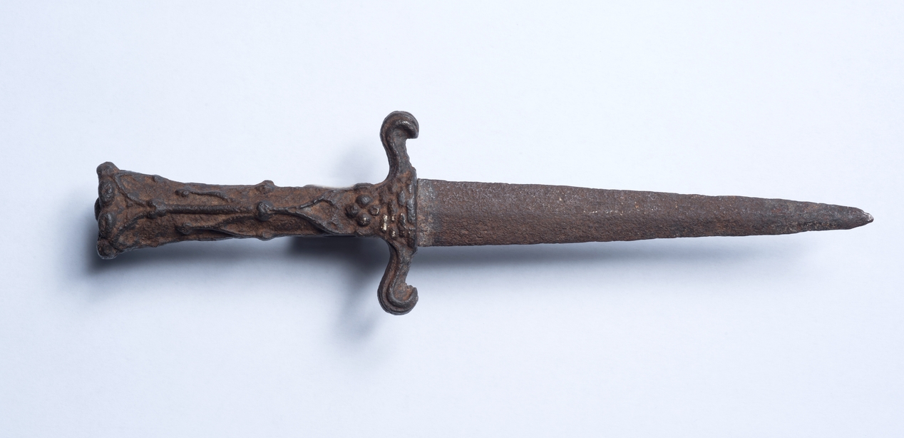 Dague à double tranchant trouvée par le propriétaire, son ornementation est remarquableImmatriculation