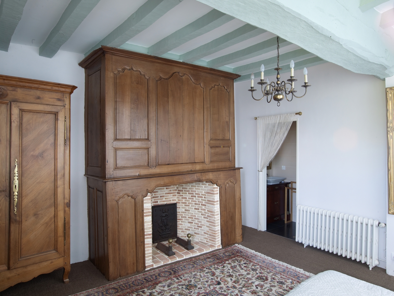 Partie sud du logis, chambre sud avec cheminée et boiseriesImmatriculation