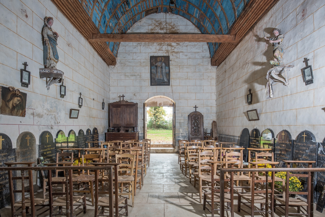 Vue générale de l'intérieur de la chapelle vue du choeur.Immatriculation