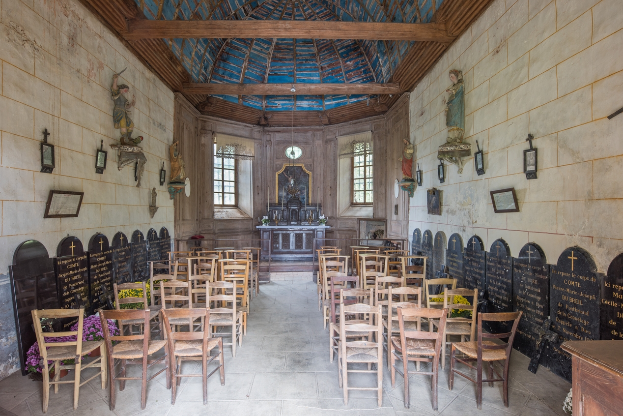 Vue générale de l'intérieur de la chapelle vue de l'entrée.Immatriculation