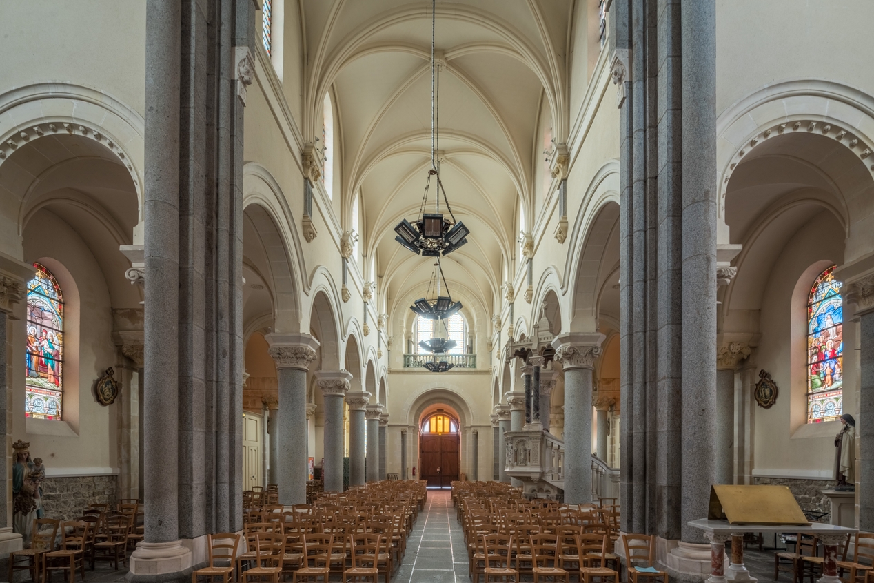 Vue d'ensemble depuis la croisée du transept vers l'entrée méridionale.Immatriculation
