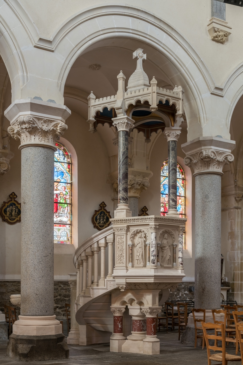 La chaire à prêcher en stuc.Immatriculation