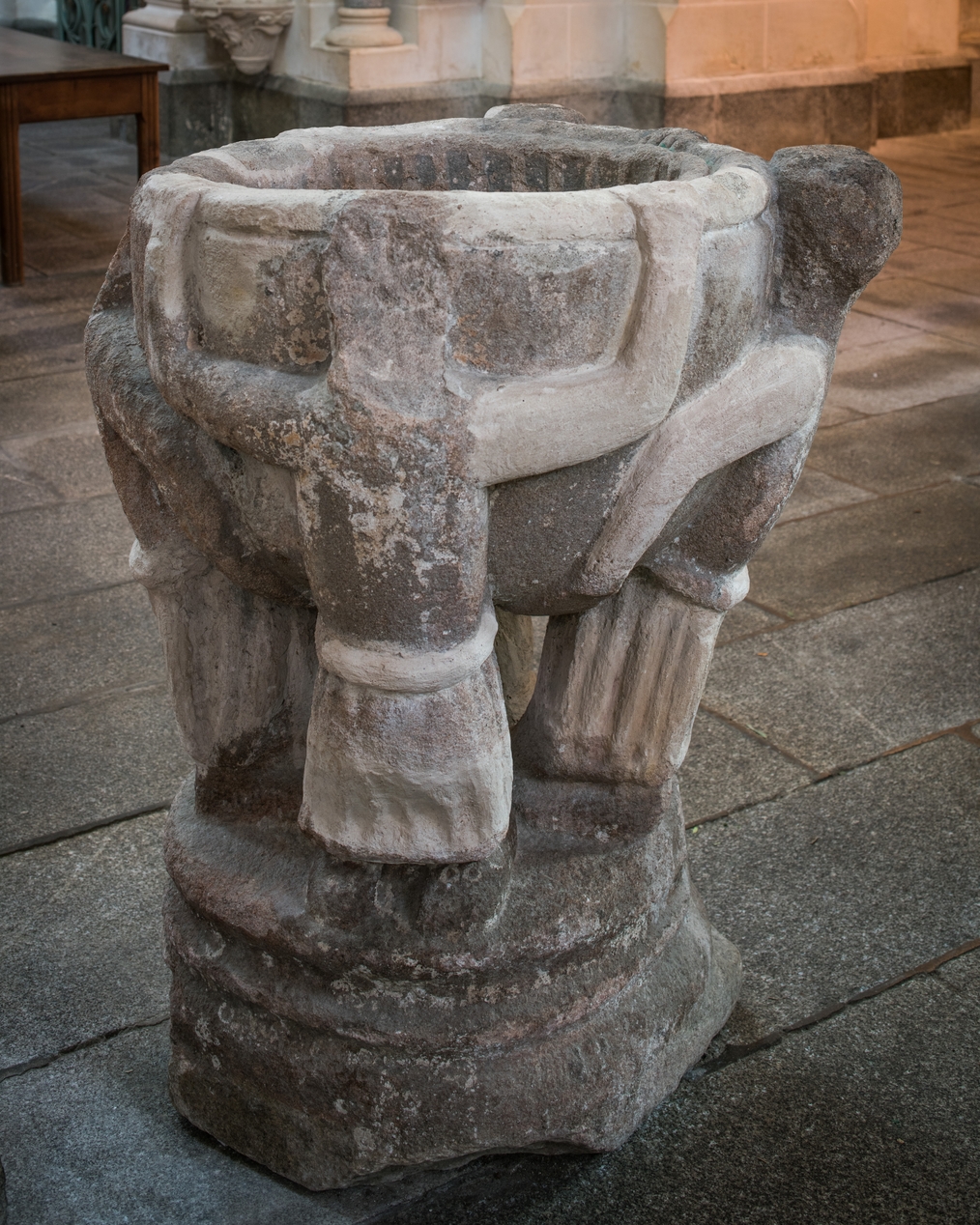 Les fonts baptismaux figurés du XIIIe siècle provenant de l'ancienne église Saint-Sauveur.Immatriculation