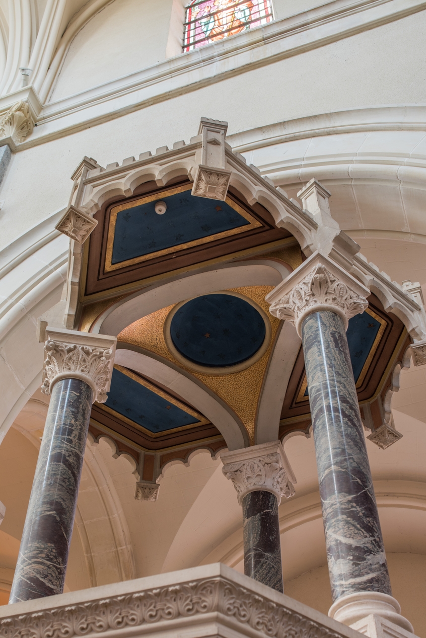 Décor intérieur du dais de la chaire à prêcher imitant la mosaïque.Immatriculation