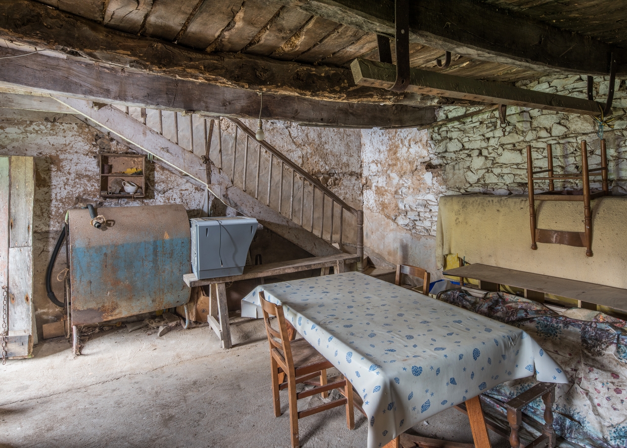 Logement de domestique aménagé dans la grange. Rez-de-chaussée. Vue intérieure de la salleImmatriculation
