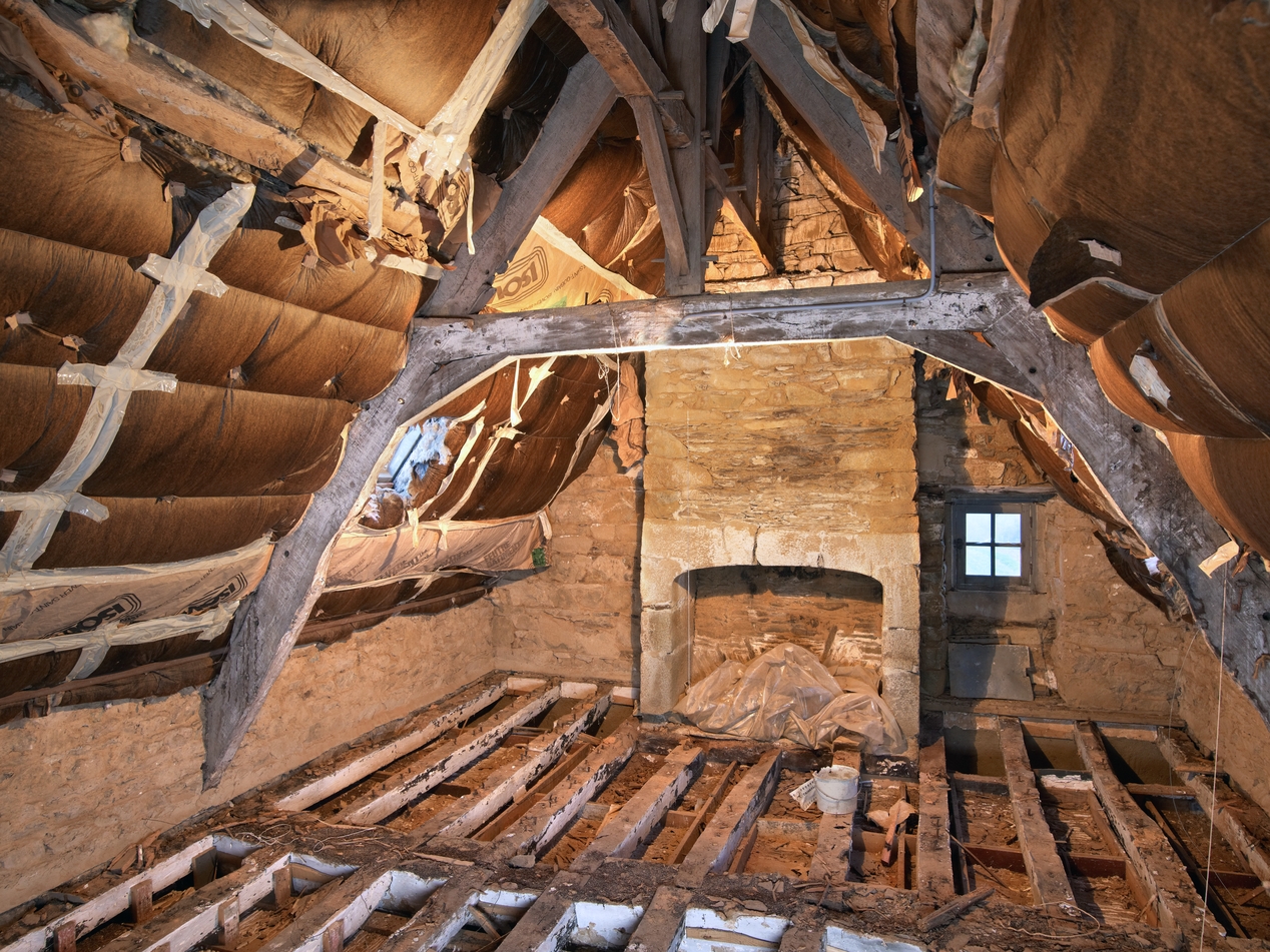 Minihy-Tréguier, 9 rue du Bourg : logis principal, étage de comble (vers le pignon est), chambre avec cheminée et charpente ancienneImmatriculation