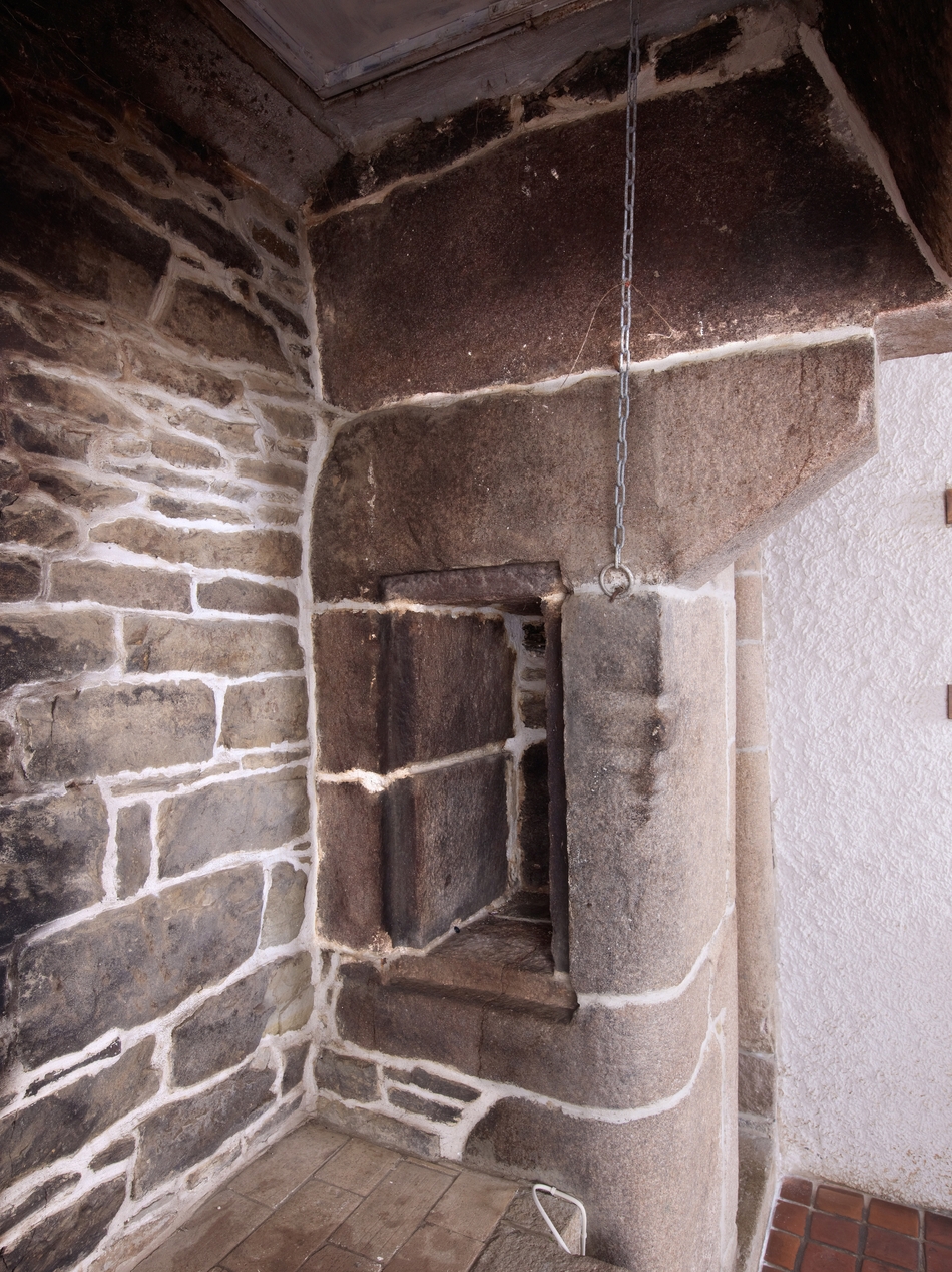 Minihy-Tréguier : manoir de Saint-Renaud, cuisine orientée est-ouest, détail de la niche verticale de la cheminée (surnommée "niche à sel")Immatriculation