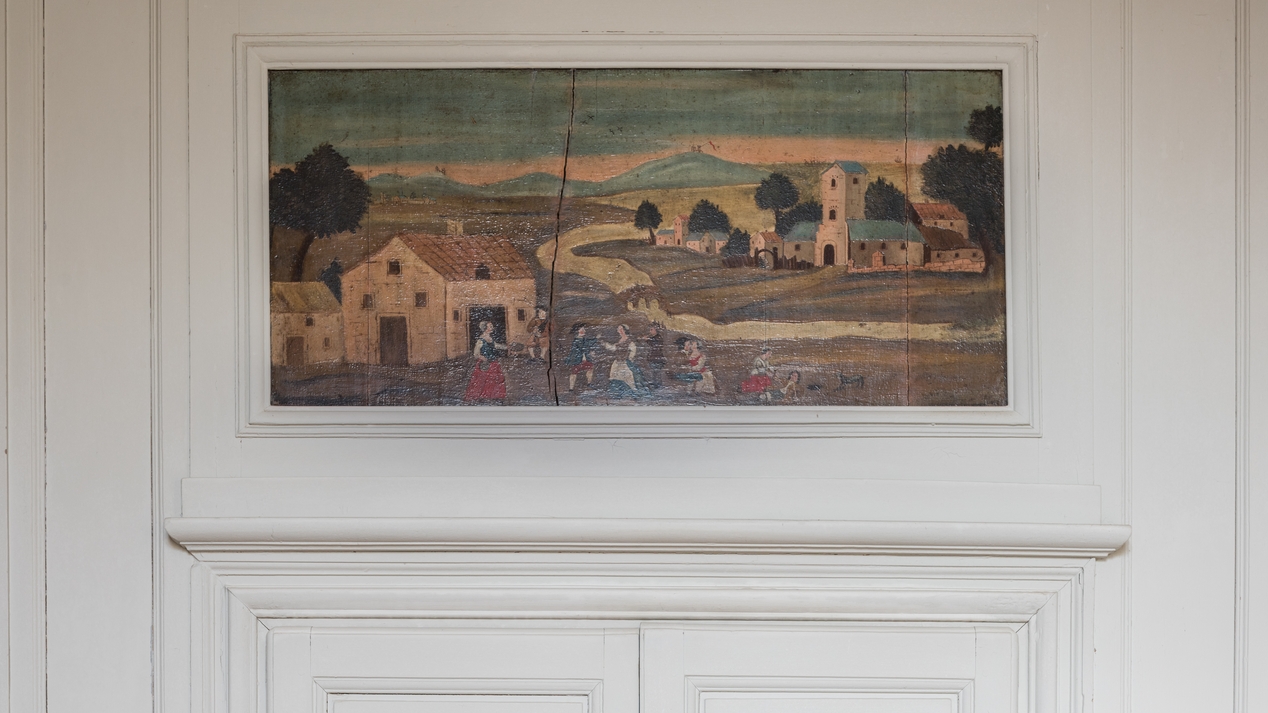 Détail du panneau peint sur le mur nord représentant Nazareth selon la légende familiale.Immatriculation