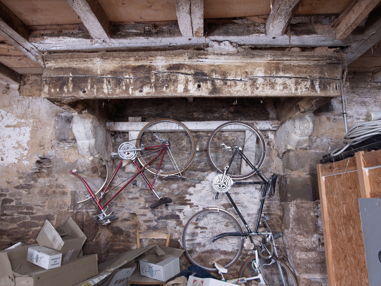 Minihy-Tréguier : manoir de Saint-Renaud, logis déclassé en garage, détail de la cheminée (piédroits vraisemblablement datables de la seconde moitié du 15e siècle)Immatriculation