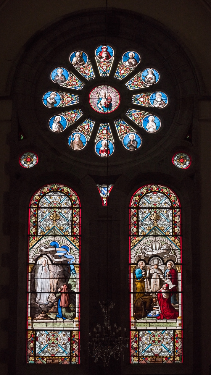 Rosace et vitraux est des nouveaux saints offerts par Emma Ferron de la Signonnière.Immatriculation