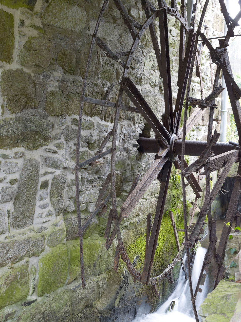 Minihy-Tréguier, le Guindy : moulin de Keraliou surnommé "moulin Le Bourva" en référence au propriétaire, détail de la roue à aubesImmatriculation