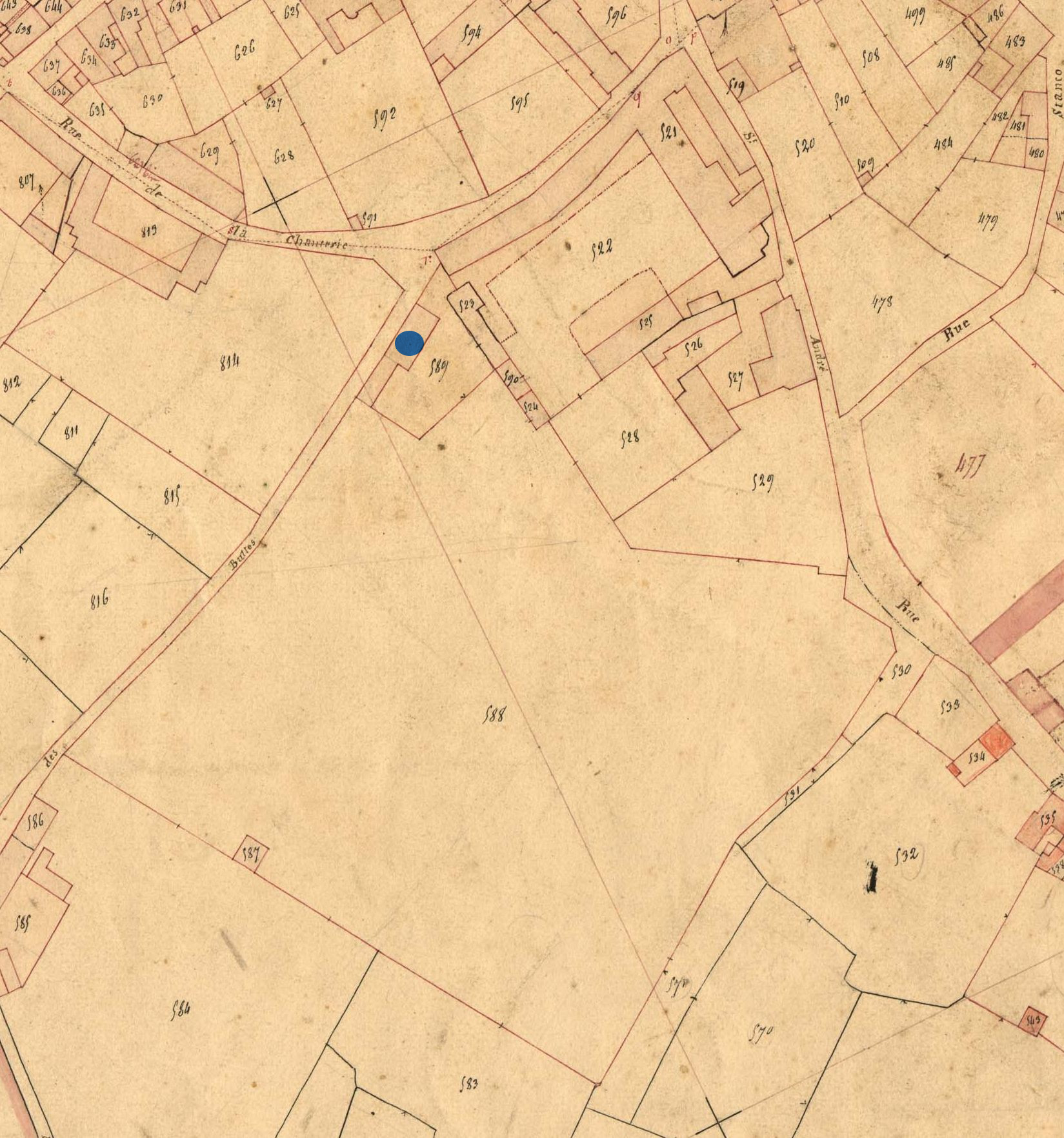 La maison en 1834. Extrait du cadastre ancien, section A2 (A.D. 22, série 3 P 367/1)Immatriculation