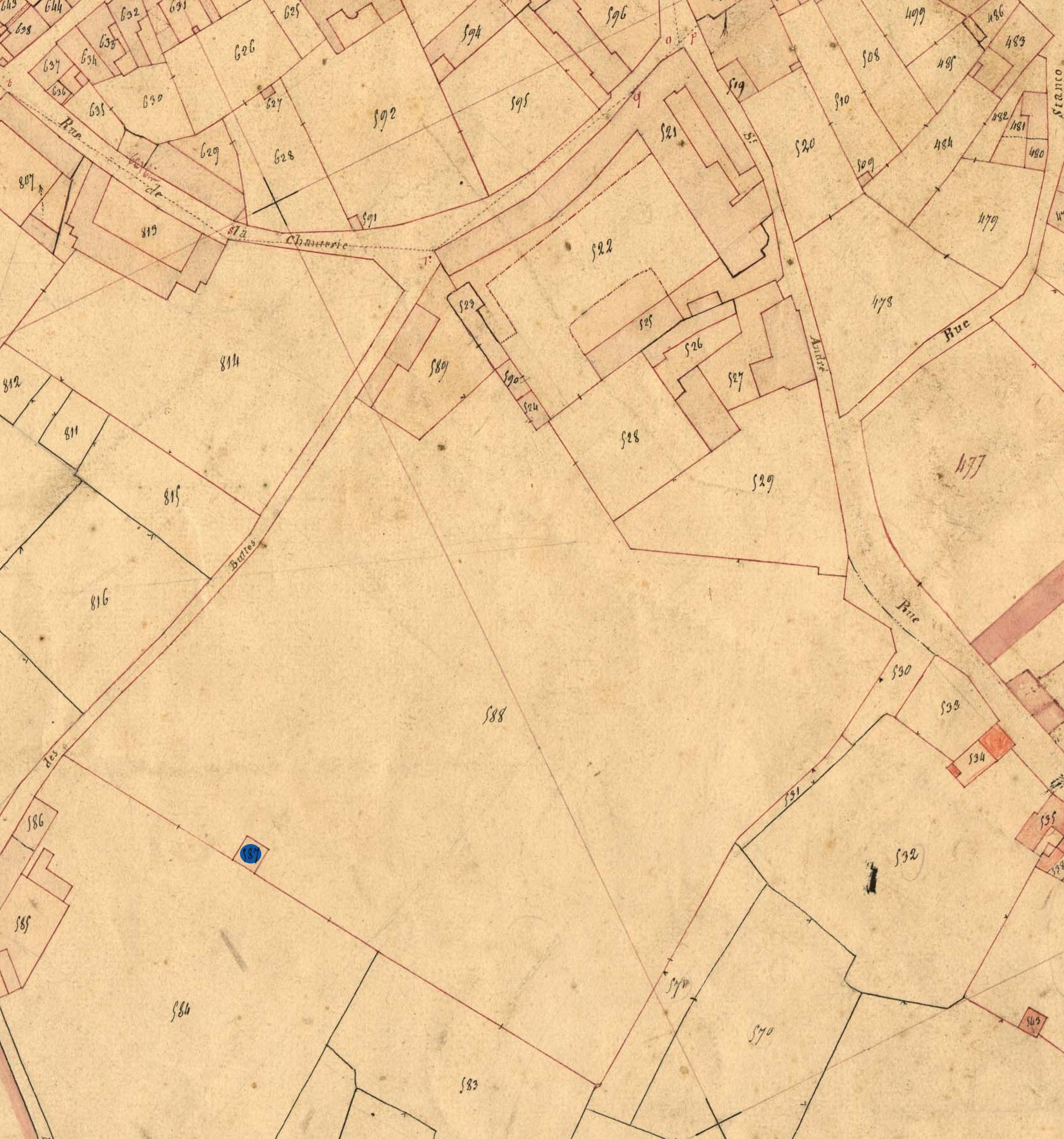 La chapelle en 1834. Extrait du cadastre ancien, section A2 (A.D. 2, série 3 P 362/1-4)Immatriculation