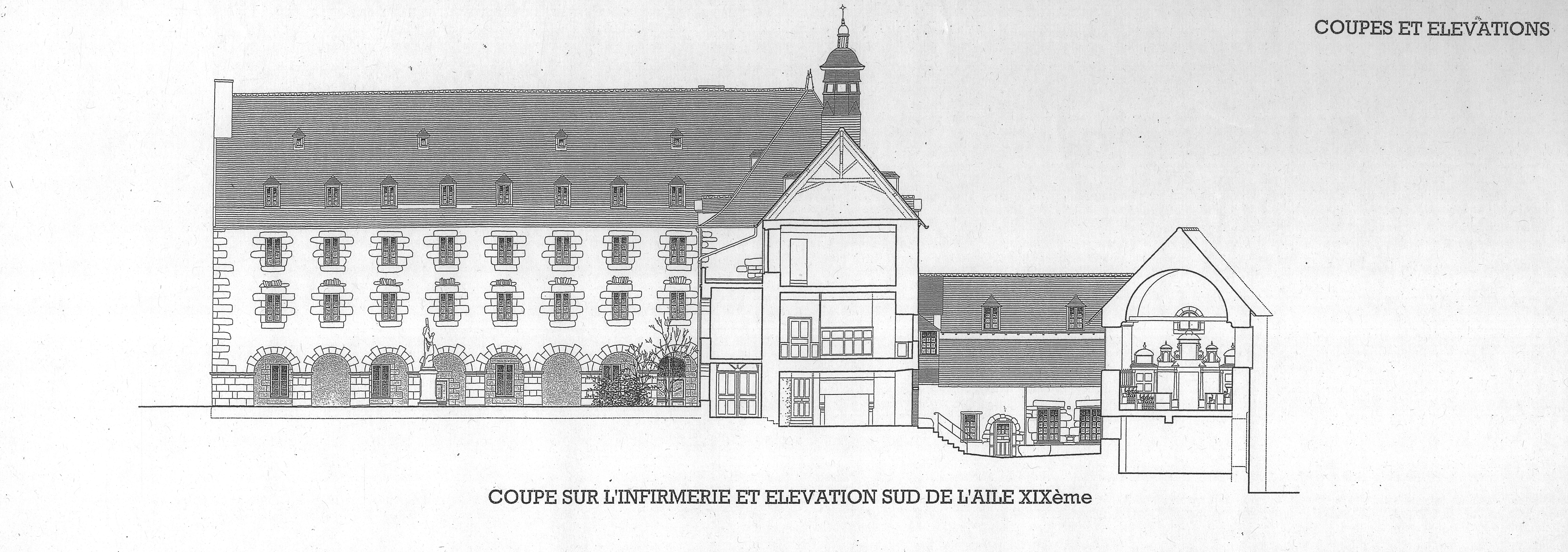 Coupe sur l'infirmerie et élévation sud de l'aile 19e siècle, novembre 2007, Christophe Batard, architecte en chef des Monuments historiquesImmatriculation