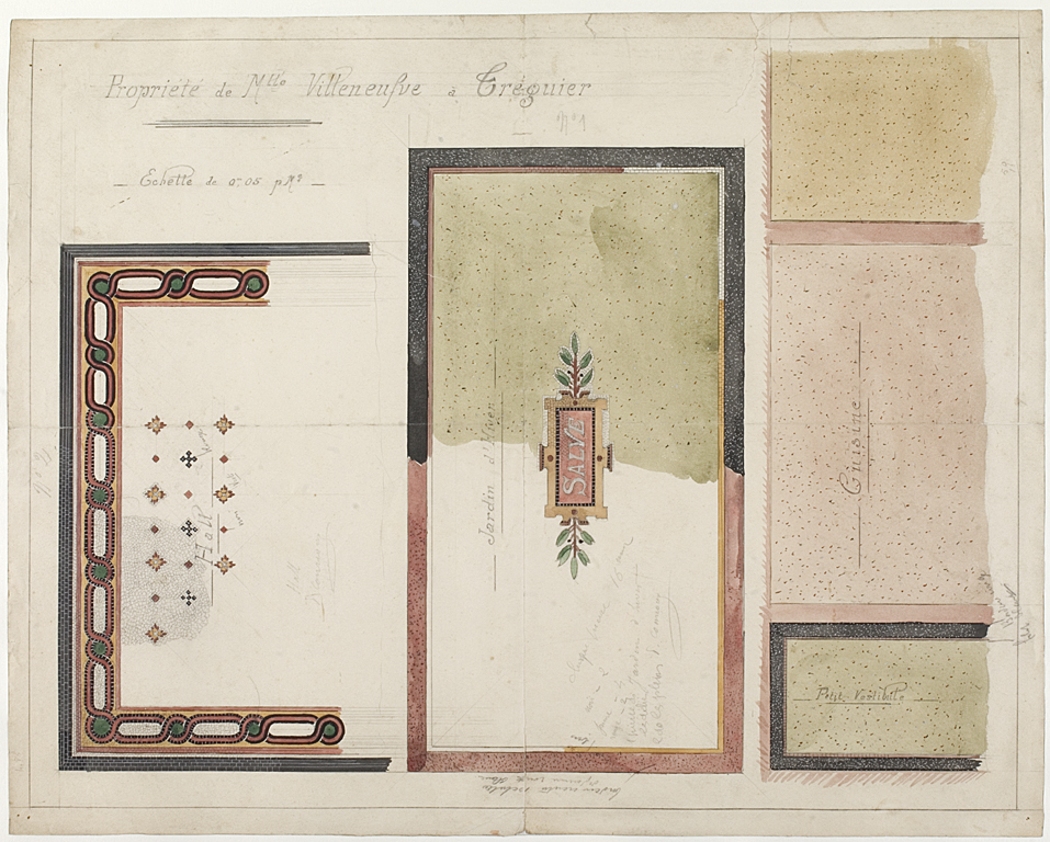 Dessin sur papier au crayon graphite et lavis. Projet de sols. Création d'Isidore Odorico père, vers 1905 (collection du musée de Bretagne)Immatriculation
