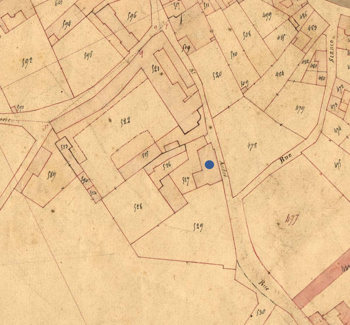 Le 8 rue Saint-André en 1834. Extrait du cadatre ancien, section A2 (A.D. 22, série 3P 367/1)Immatriculation