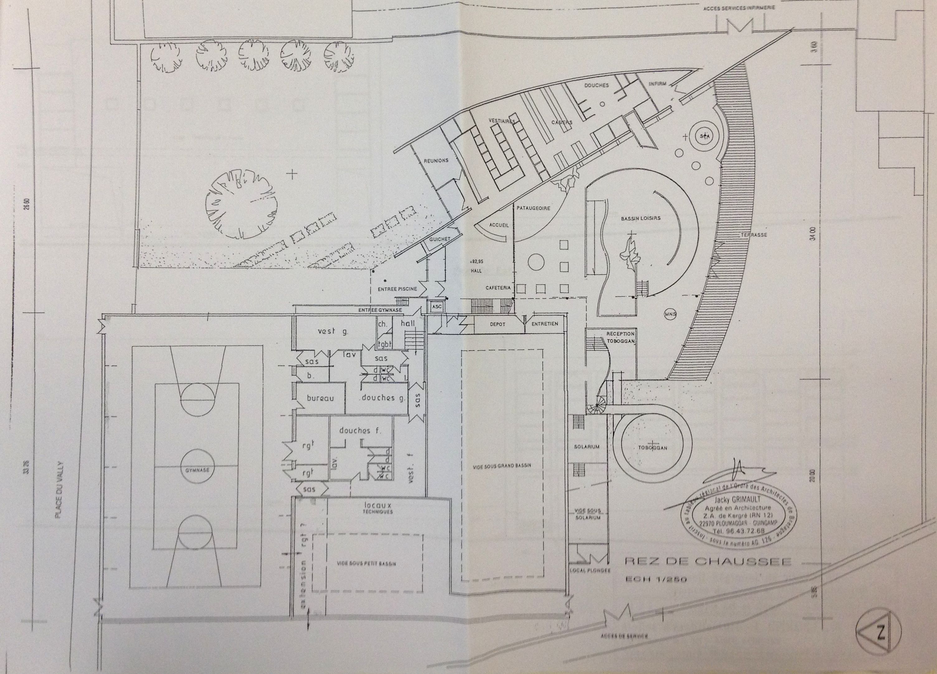 AC Guingamp : PC n° 02201001X1007. Plan d'extension de la piscine. J. Grimault, 2001.