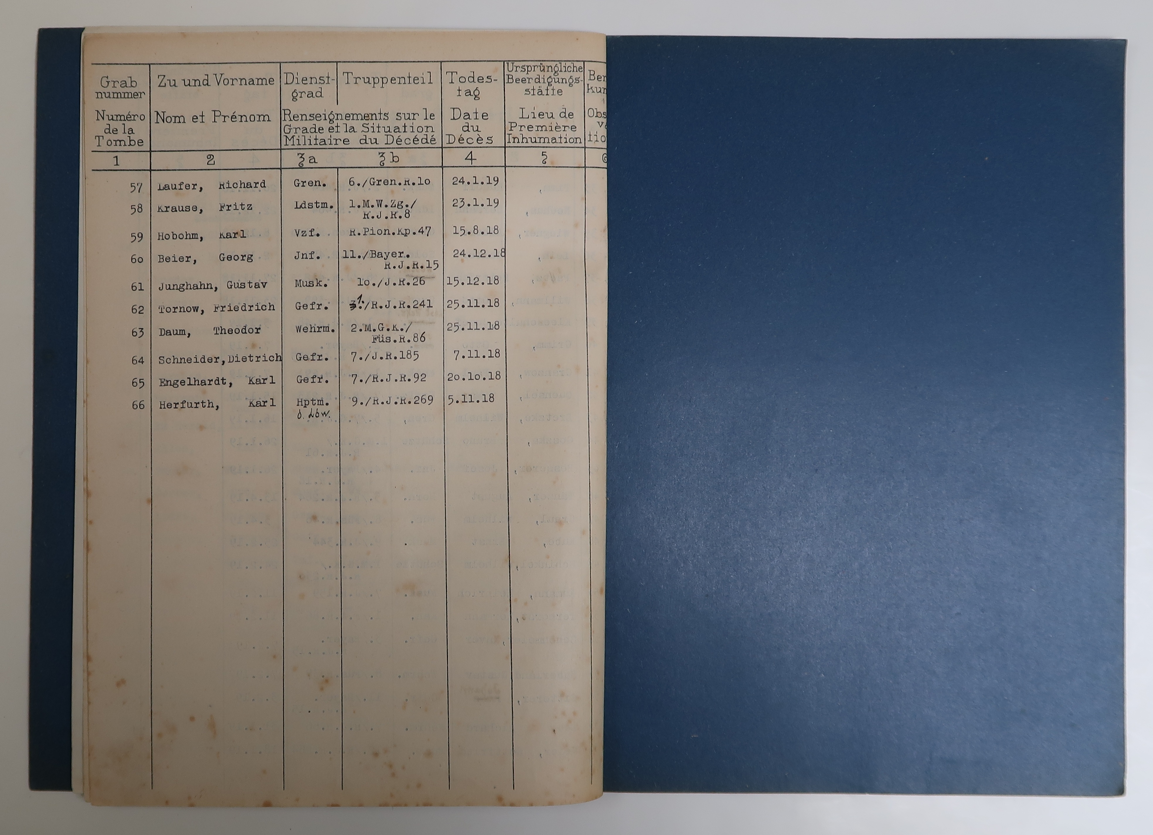 Tréguier, cimetière Saint-Fiacre et carrés militaires français et allemands : liste nominative des soldats allemands inhumés à Tréguier, 29 octobre 1937 (Archives municipales de Tréguier, 4H46)Immatriculation