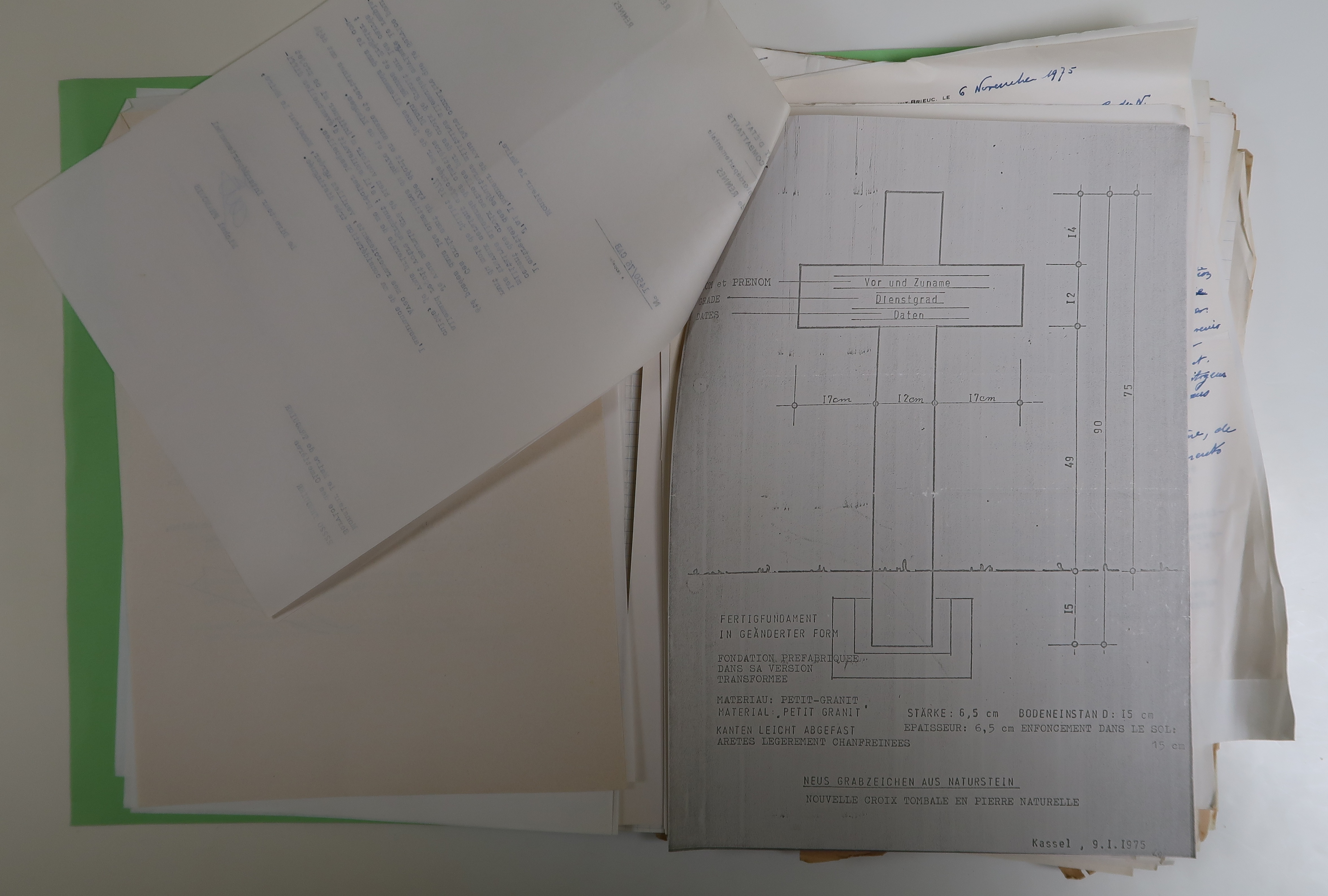 Tréguier, cimetière Saint-Fiacre et carrés militaires français et allemands : plan des croix en granite proposé par le service pour l'entretien des sépultures militaires allemandes, Kassel, 9 janvier 1975 (Archives municipales de Tréguier, 4H43)Immatriculation