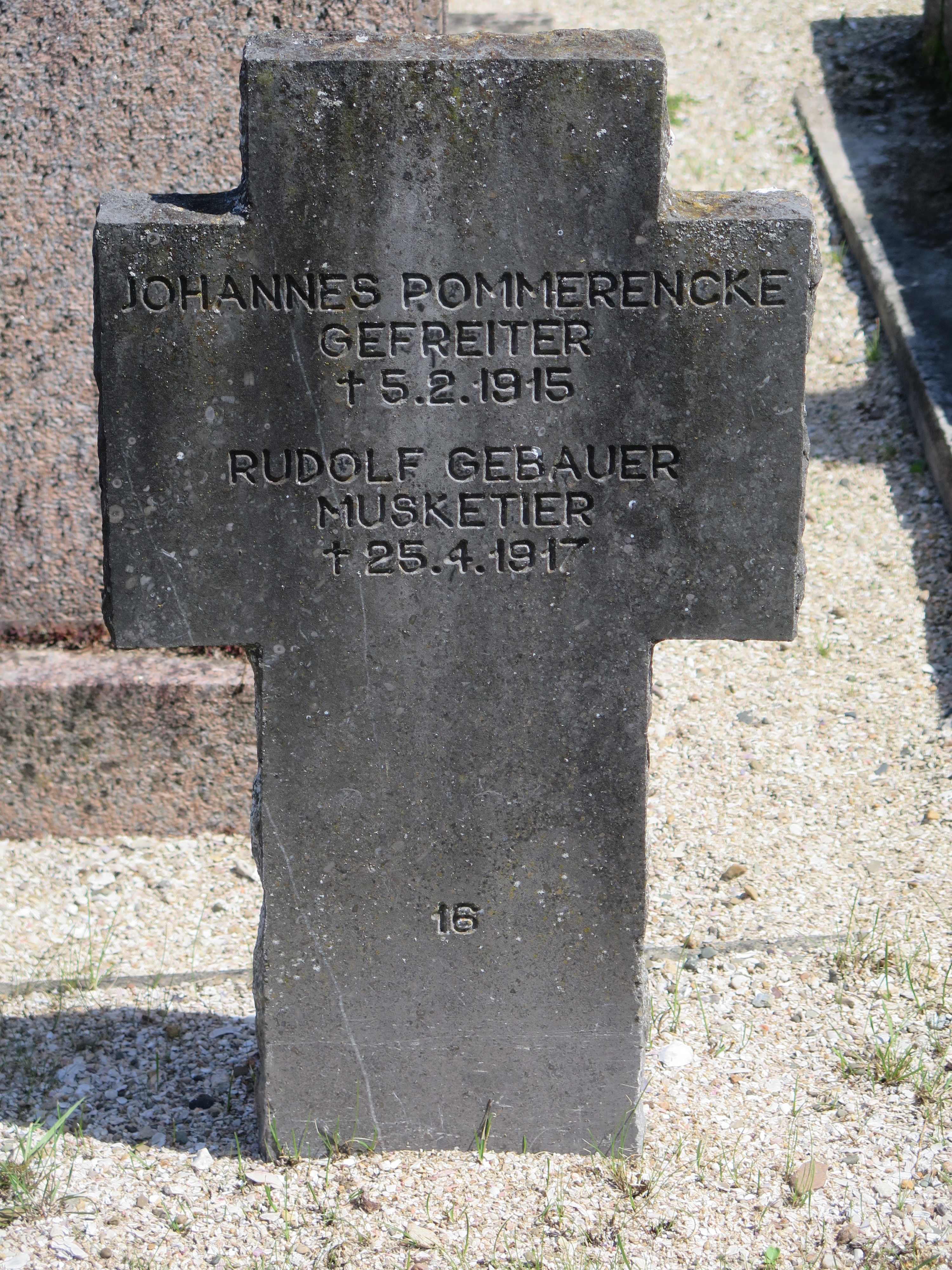 Tréguier : cimetière Saint-Fiacre, carré militaire allemand (partie haute disposée sur une rangée de 17 tombes), détail d'une tombe doubleImmatriculation