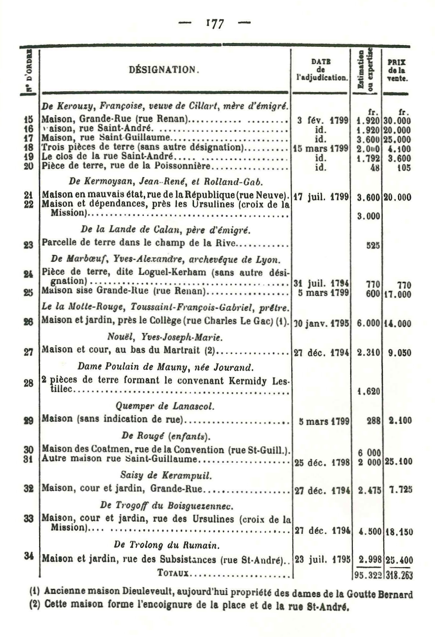 Tréguier : tableau des biens du Clergé et des Maisons religieuses par Adolphe Guillou (Essai historique sur Tréguier par un Trécorrois, p. 177)Immatriculation