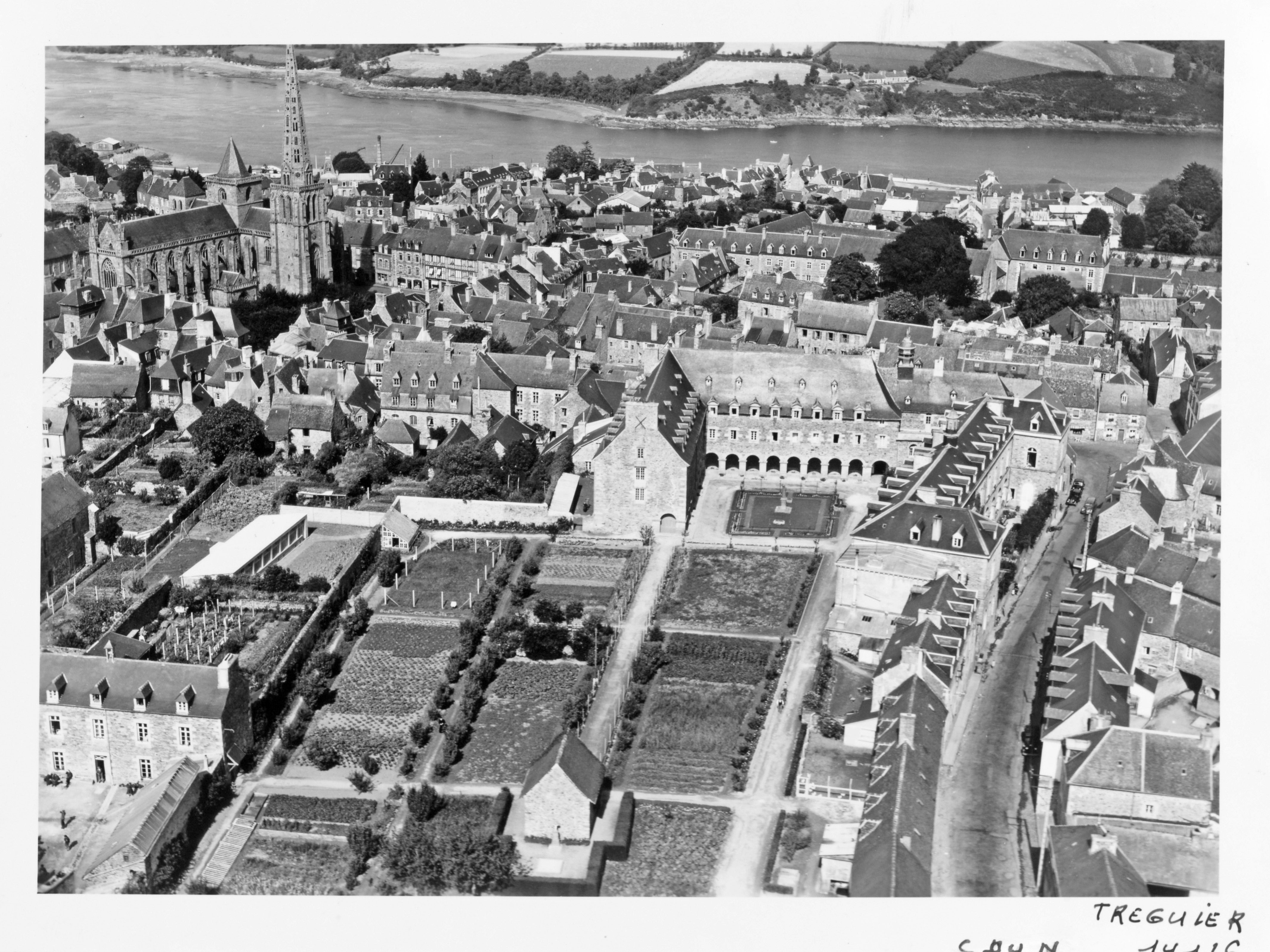 Vue aérienne oblique du couvent des Augustines - ancien Hôtel-Dieu, vers 1954 (Archives départementales des Côtes-d'Armor, collection photographique Henrard : FRAD022_26Fi_458)Immatriculation