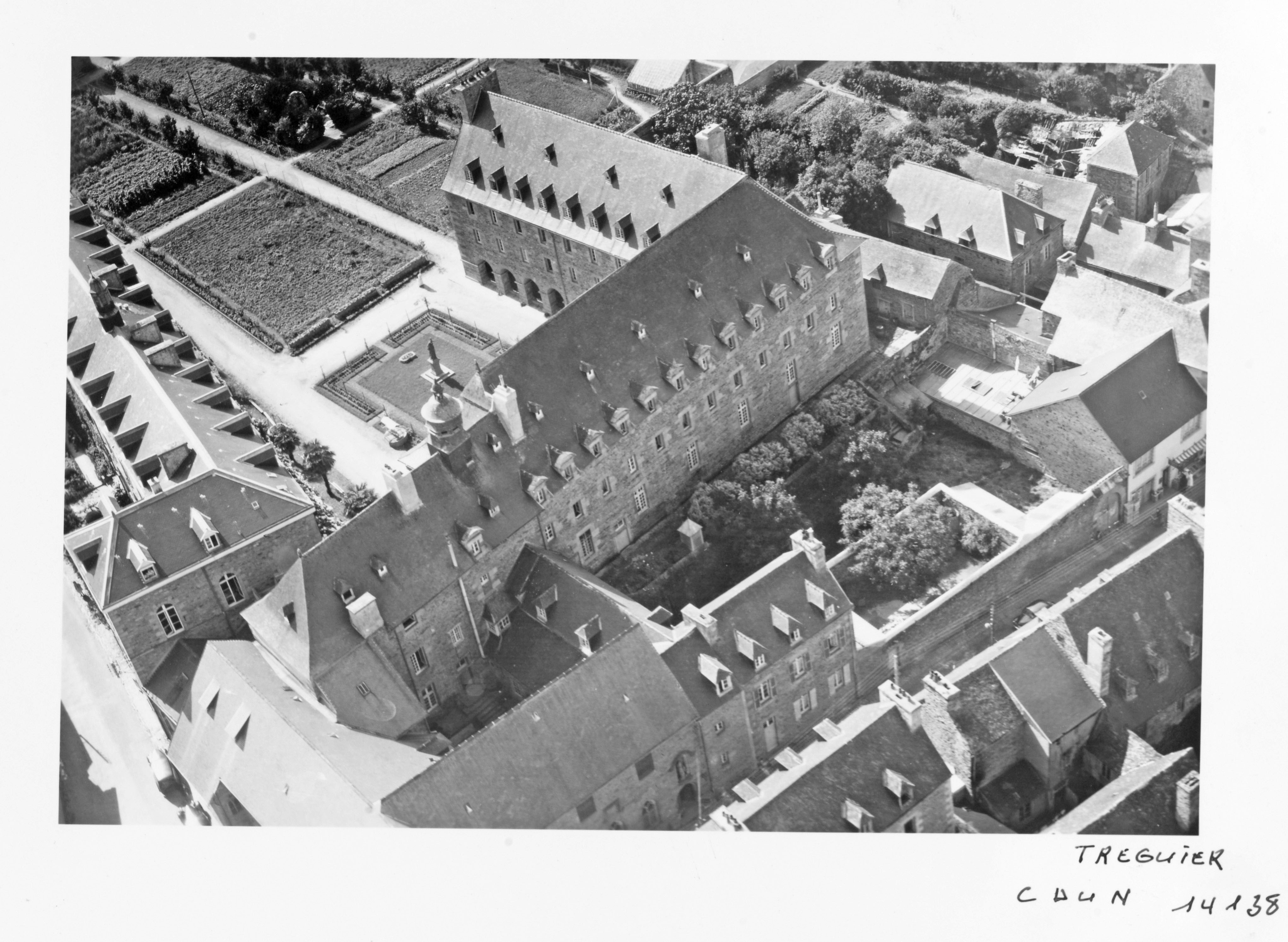 Vue aérienne oblique du couvent des Augustines - ancien Hôtel-Dieu, vers 1954 (Archives départementales des Côtes-d'Armor, collection photographique Henrard : FRAD022_26Fi_459)Immatriculation