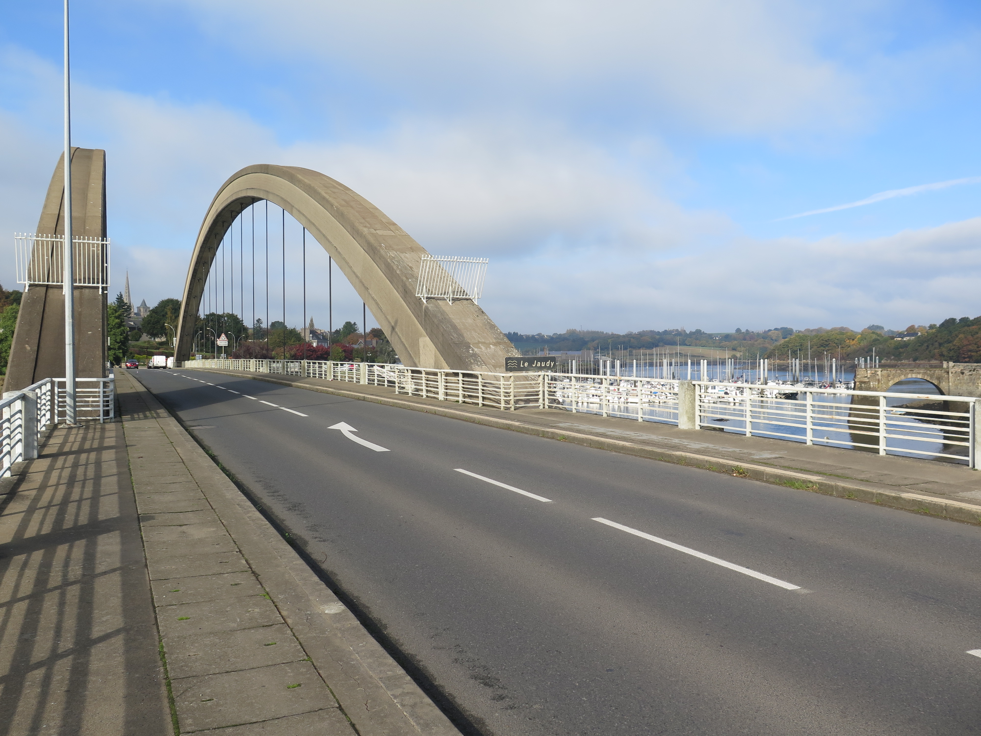 Tréguier : pont Canada (1954). A droite sur la photographie, travée de l'ancien pont (1886-1954)Immatriculation