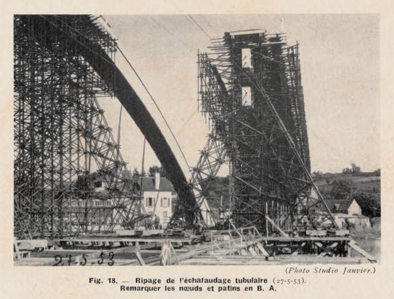 Tréguier : pont Canada, opération de ripage de l'échafaudage de l'arc, 27 mai 1953 (source : Travaux, revue mensuelle, n° 245, mars 1955)Immatriculation