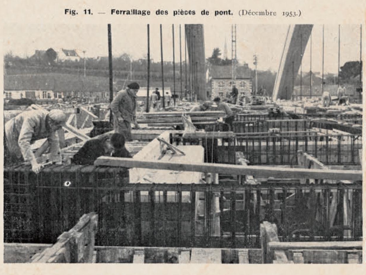 Tréguier : pont Canada, opération de ferraillage du tablier, décembre 1953 (source : Travaux, revue mensuelle, n° 245, mars 1955)Immatriculation