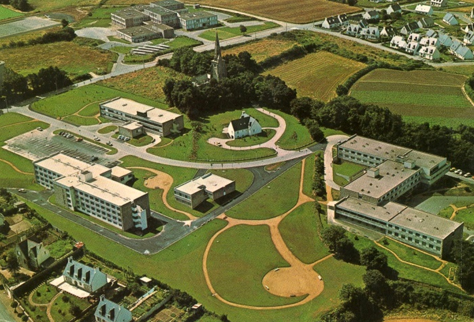 Tréguier : tour Saint-Michel, vue aérenne oblique, vers 1960-1970, carte postale (collection particulière)Immatriculation