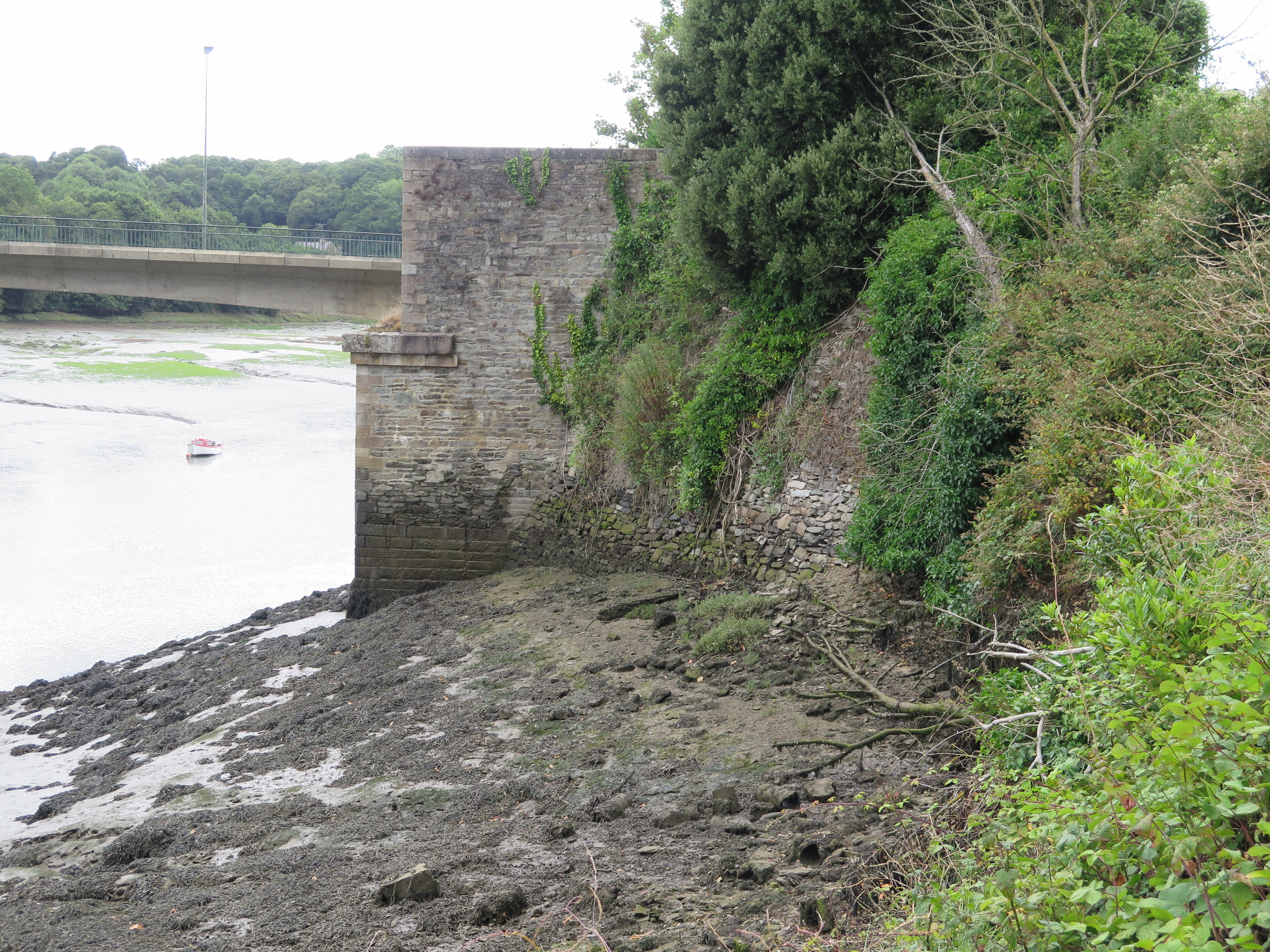 Vue des vestiges de la culée du Pont noir en maçonnerie de granite côté TréguierImmatriculation