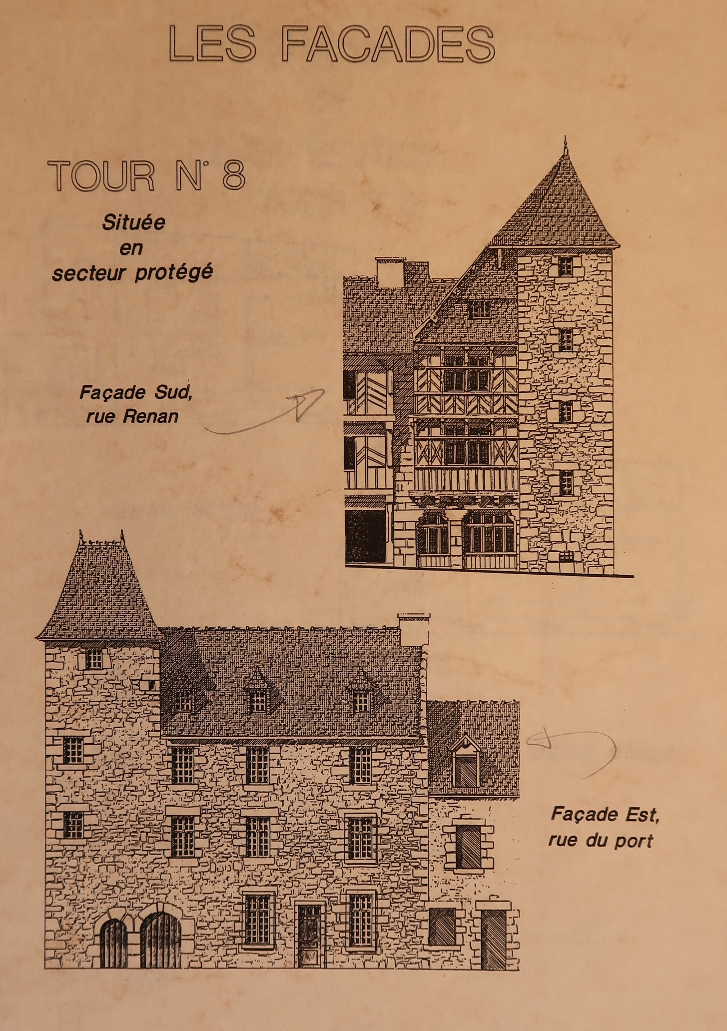 Tréguier, rue Renan - quais du Jaudy (8 rue du Port) : maison d'armateur ou de négociant, projet immobilier de 1991 nommé "Les Tours", relevés des façades est et sud (archives de la Conservation régionale des monuments historiques de Bretagne)Immatriculation