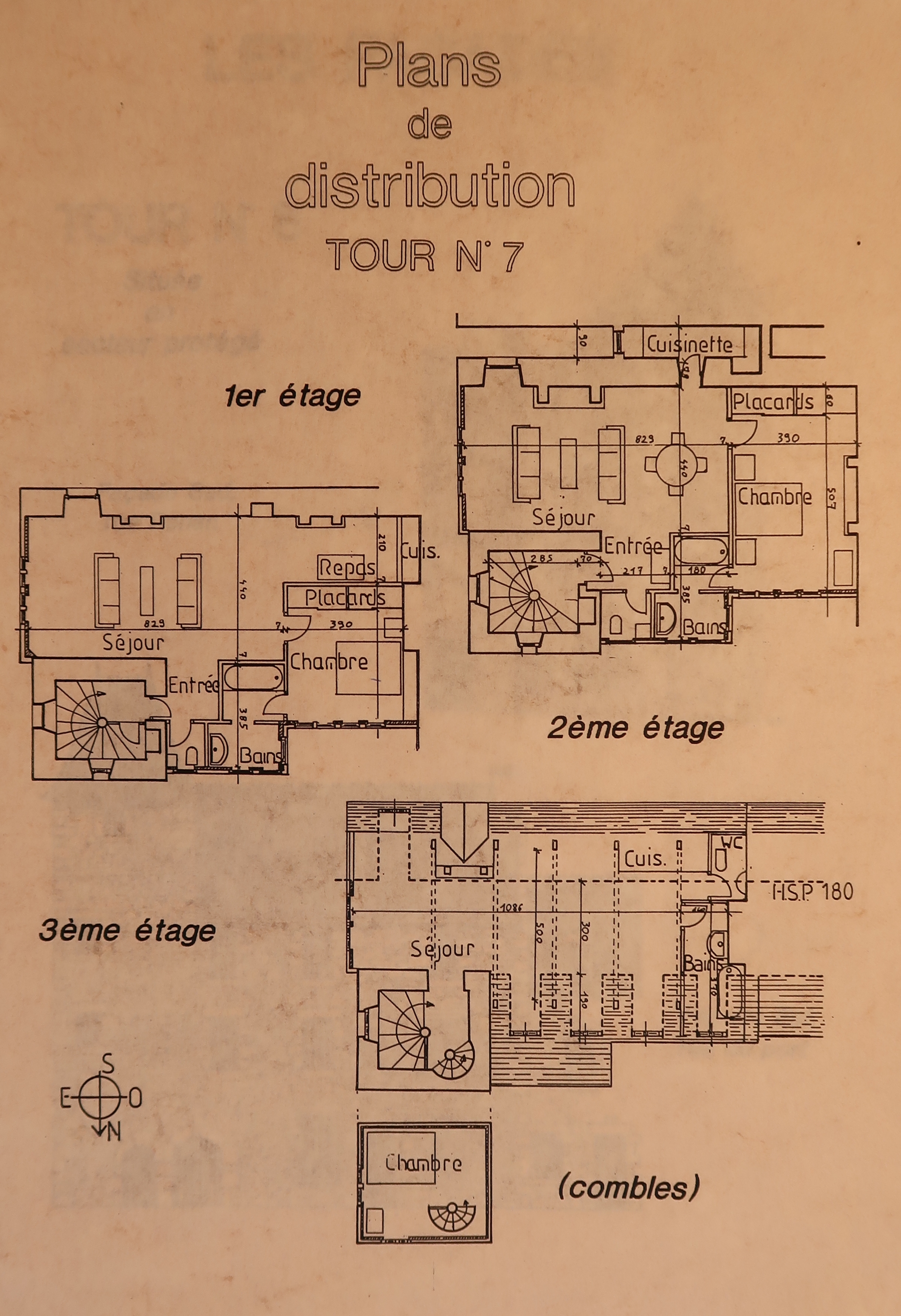 Tréguier, rue Renan - quai du Jaudy (7 place du Général de Gaulle) : maison d'armateur ou de négociant, projet immobilier de 1991 nommé "Les Tours" (pour mémoire), plans des différents niveaux (archives de la Conservation régionale des monuments historiques de Bretagne)Immatriculation