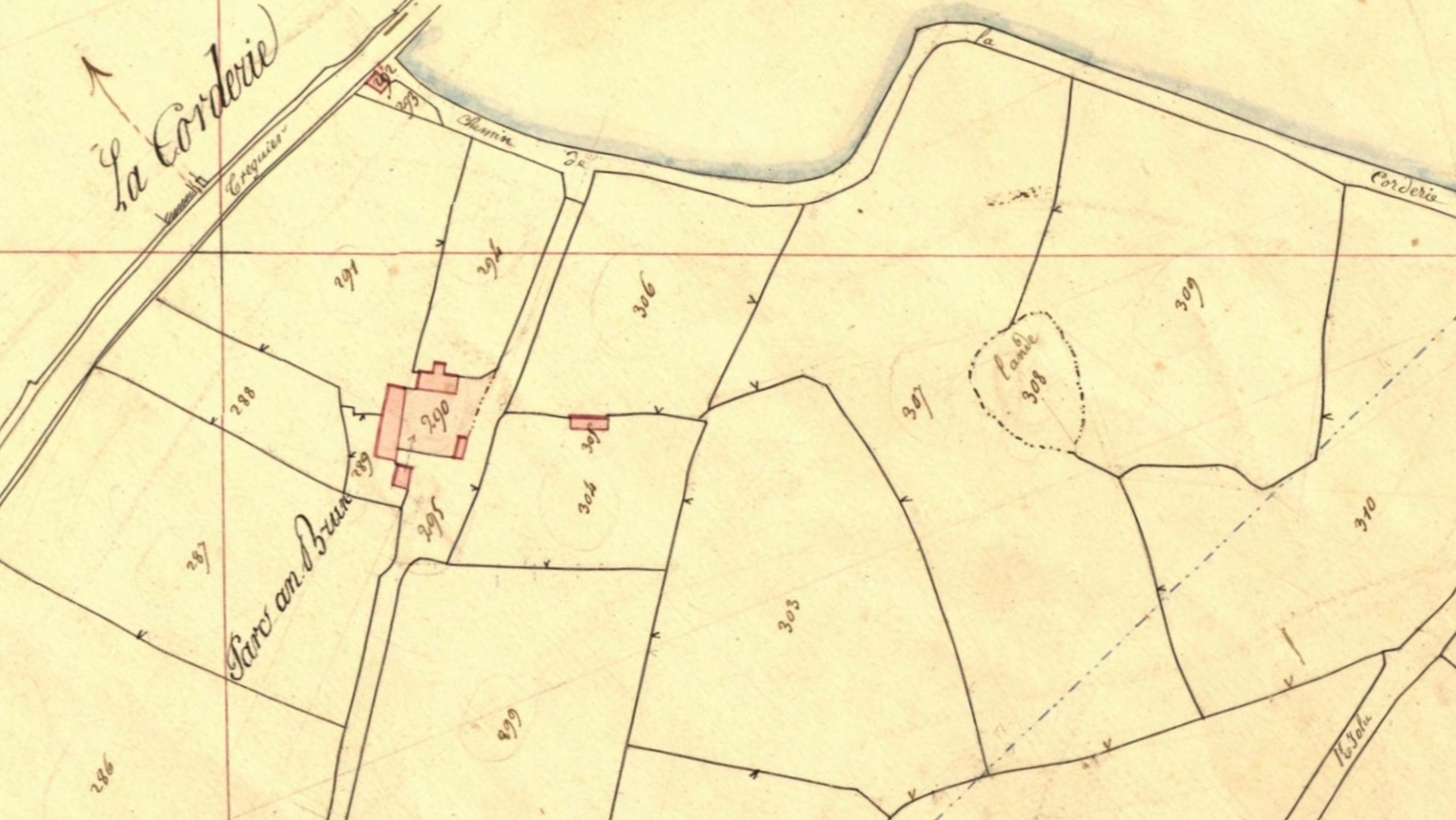 Extrait du cadastre ancien de Minihy-Tréguier, section A2 dite de Saint-Yves, 1835 : "Parc an Brun" (Park an Brun)Immatriculation