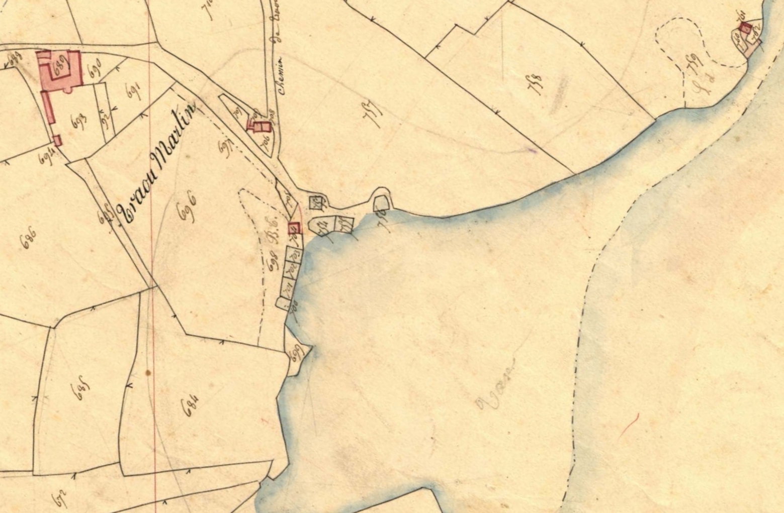 Extrait du cadastre ancien de Minihy-Tréguier, section A3 dite de Saint-Yves, 1835 : "Traou Martin" (ancien manoir et routoirs)Immatriculation