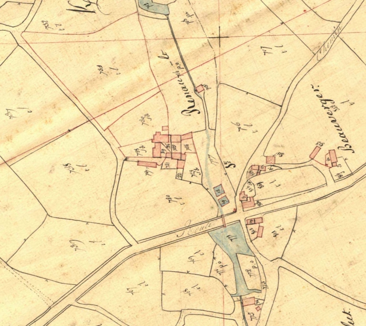 Extrait du cadastre ancien de Minihy-Tréguier, section B3 dite de Saint Renault, 1835 : "Saint-Renault" [Saint-Renaud] ; "Beauverger"Immatriculation