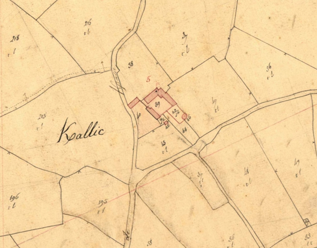 Extrait du cadastre ancien de Minihy-Tréguier, section C1 dite de Kermoal, 1835 : "K[er]allic" (ancien site manorial : le colombier et la cour fermée sont bien visibles)Immatriculation