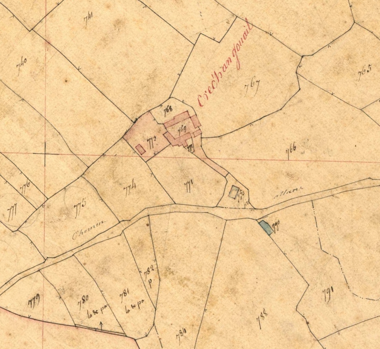 Extrait du cadastre ancien de Minihy-Tréguier, section C2 dite de Kermoal, 1835 : "Crec'h an gouail"Immatriculation
