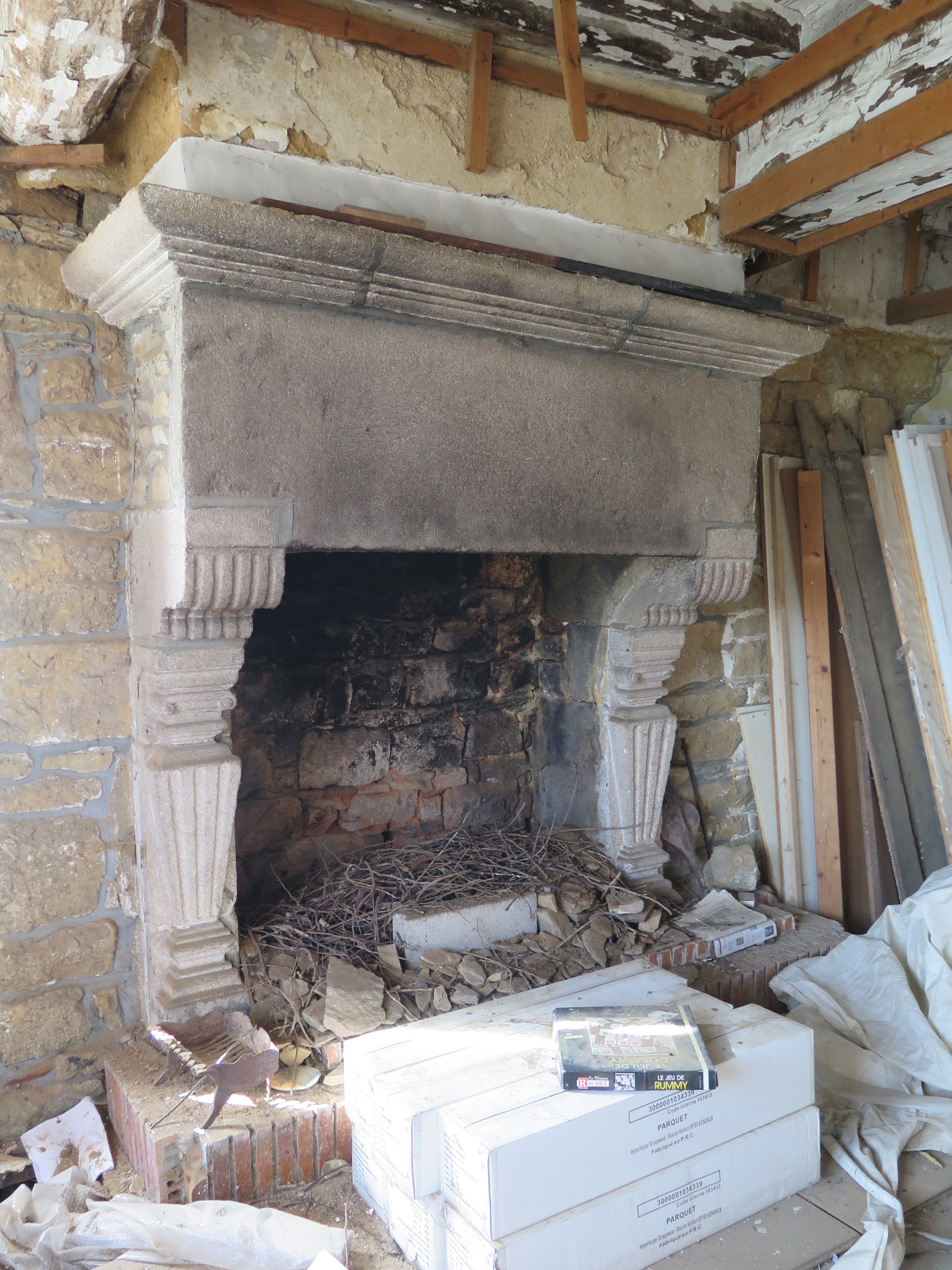 Tréguier, rue Renan - quai du Jaudy (7 place du Général de Gaulle) : maison d'armateur ou de négociant, premier étage, cheminée du mur gouttereau sud (visite réalisée le 11 avril 2017 avec la mairie de Tréguier)Immatriculation